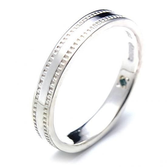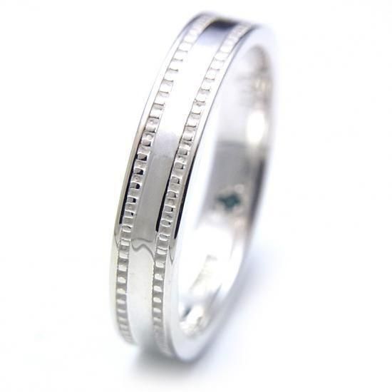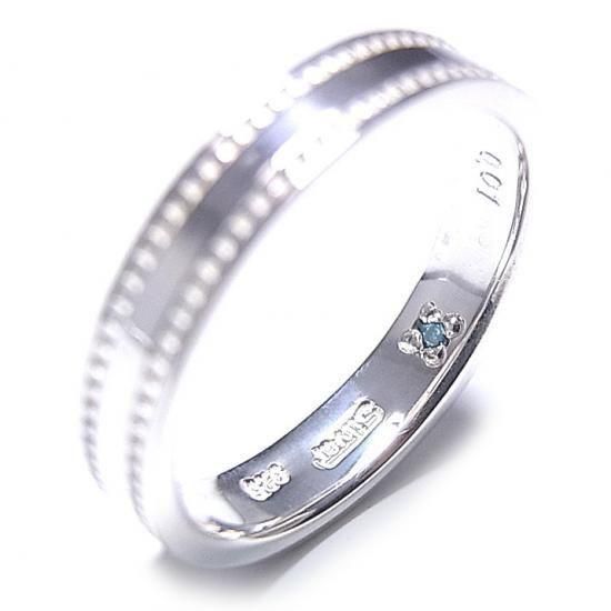 人気のブルーダイヤを内側にさりげなくあしらった、ミル打ちデザインリング。