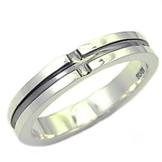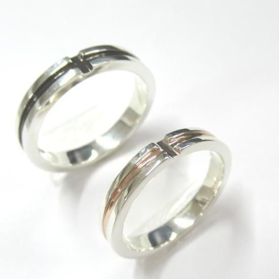 クロスが入ったプレーンなデザインリング。男女ともに使いやすいデザインです。色違いのピンクのクロスがはいったリング【173-090】こちらと組み合わせてもおすすめです。