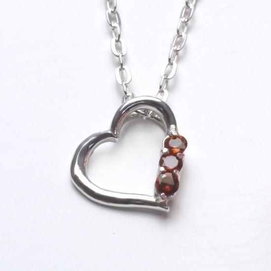 シルバー925 ハート バースデイ ネックレス【1月:ガーネット】