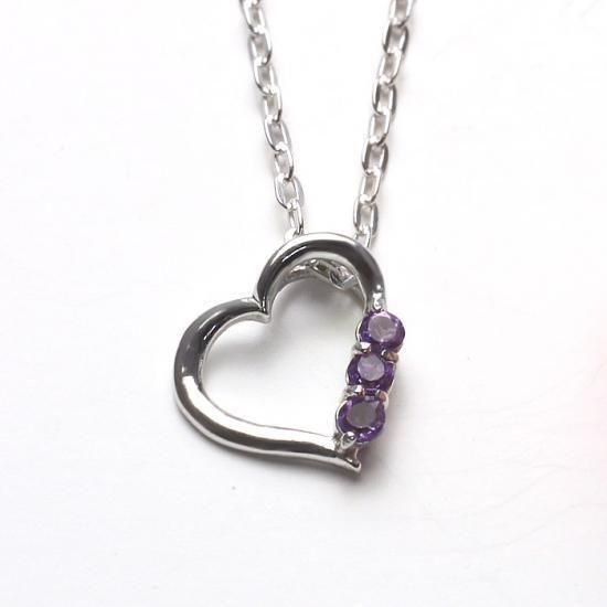 シルバー925 ハート バースデイ ネックレス【2月:アメジスト】