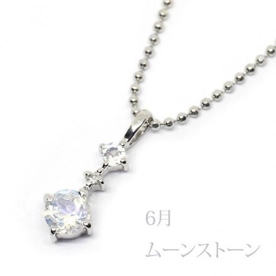 シルバー925 誕生石×ダイヤモンド ネックレス【6月:ムーンストーン】