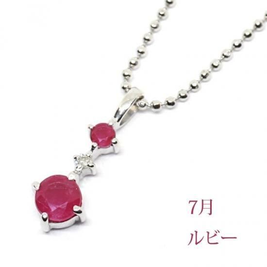 シルバー925 誕生石×ダイヤモンド ネックレス【7月:ルビー】