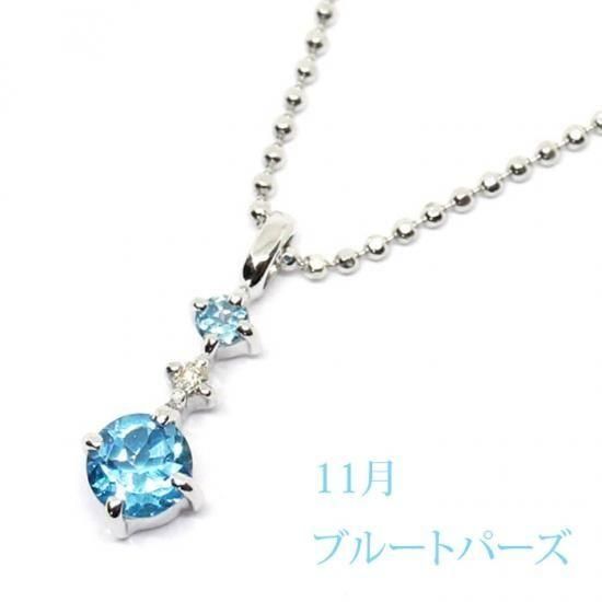 シルバー925 誕生石×ダイヤモンド ネックレス【11月:ブルートパーズ】