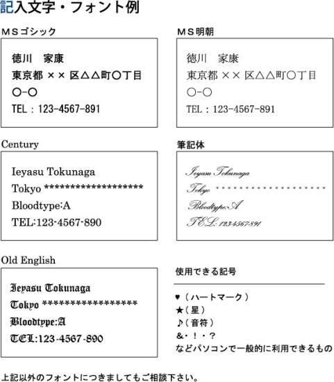 ◆ご注文時 【フォント・メッセージ】 を摘要欄ご記入ください。