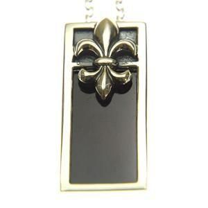 【バー二ングブル】シルバー925 オニキス ユリの紋章ペンダント (ネックレス)