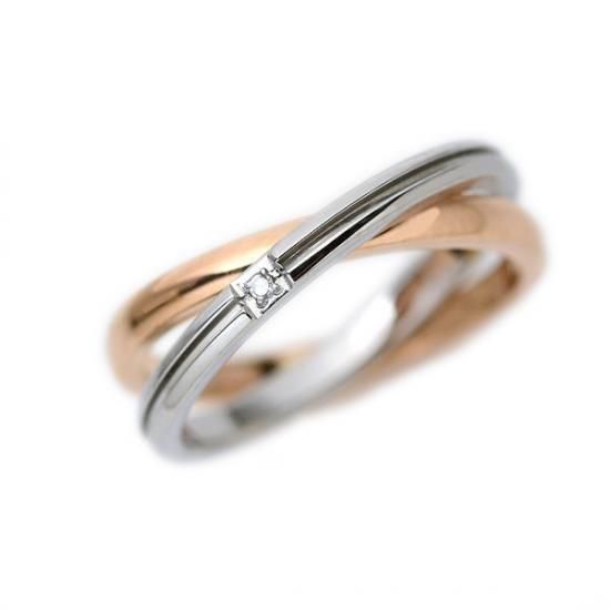 ステンレス CZ2連デザインリング2mm【PVDピンク】サイズ3〜19号