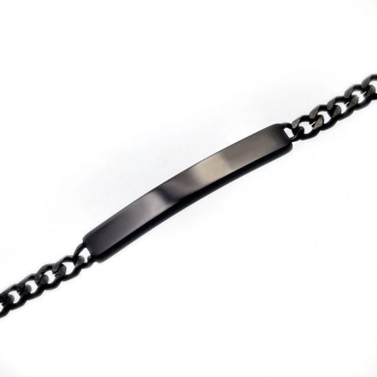 ステンレス プレートブレスレット18cm【PVDブラック】