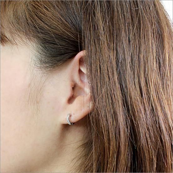 甘さのないシンプルな平打ちタイプの中折れピアス。