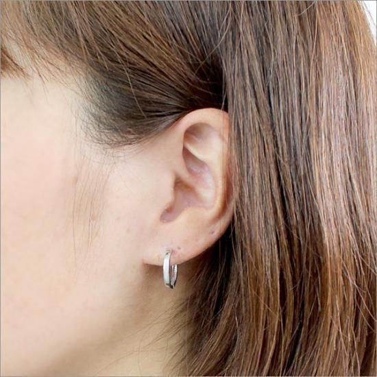 甘さのないシンプルな平打ちタイプの中折れピアス。