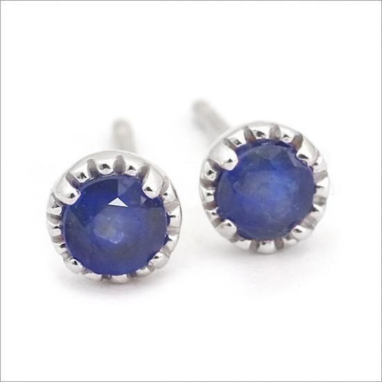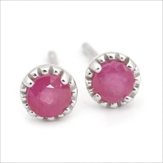 K10WG×ルビー/サファイア ミル打ち スタッドピアス