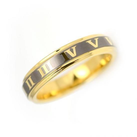 タングステン ローマ数字デザインリング4mm幅【PVD K18】5〜21号