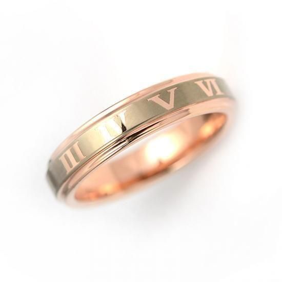 タングステン ローマ数字デザインリング4mm幅【PVD ピンク】5〜21号