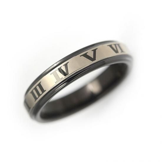 ローマ数字が表面に入ったキレイなリング。6mm幅とペアで使うのもお勧めです。