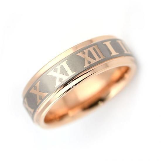 タングステン ローマ数字デザインリング6mm幅【PVD ピンク】7〜23号
