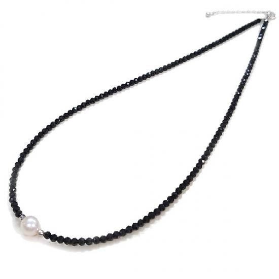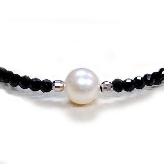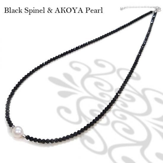 ■キラキラ輝くブラックスピネルとふんわりした光沢のあこや真珠。