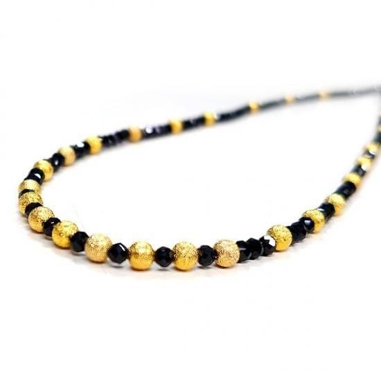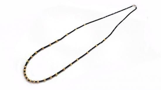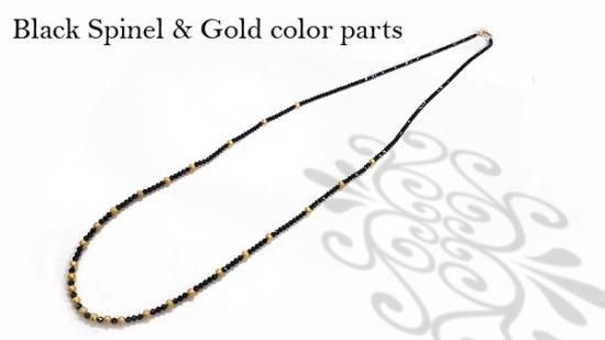 ブラックスピネルxゴールドカラーパーツ ロングネックレス