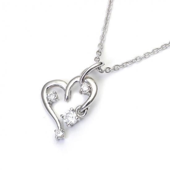 高品質CZ シルバー925 ネックレス"ハートペンダント"キラキラ輝くキュービックジルコニア【700-031】