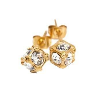 4mmのスワロフスキー(合成ガラス)6石を使ったキューブ型スタッドピアス。